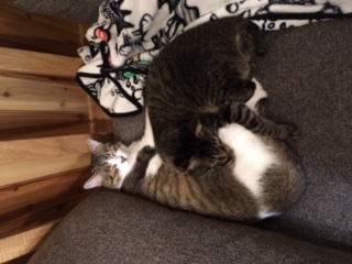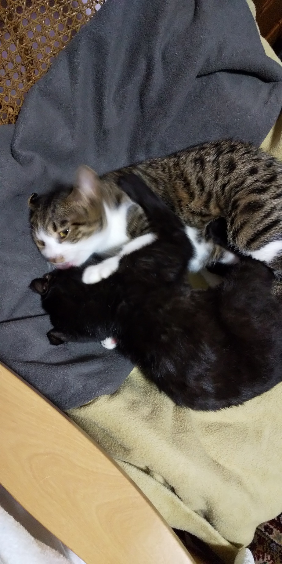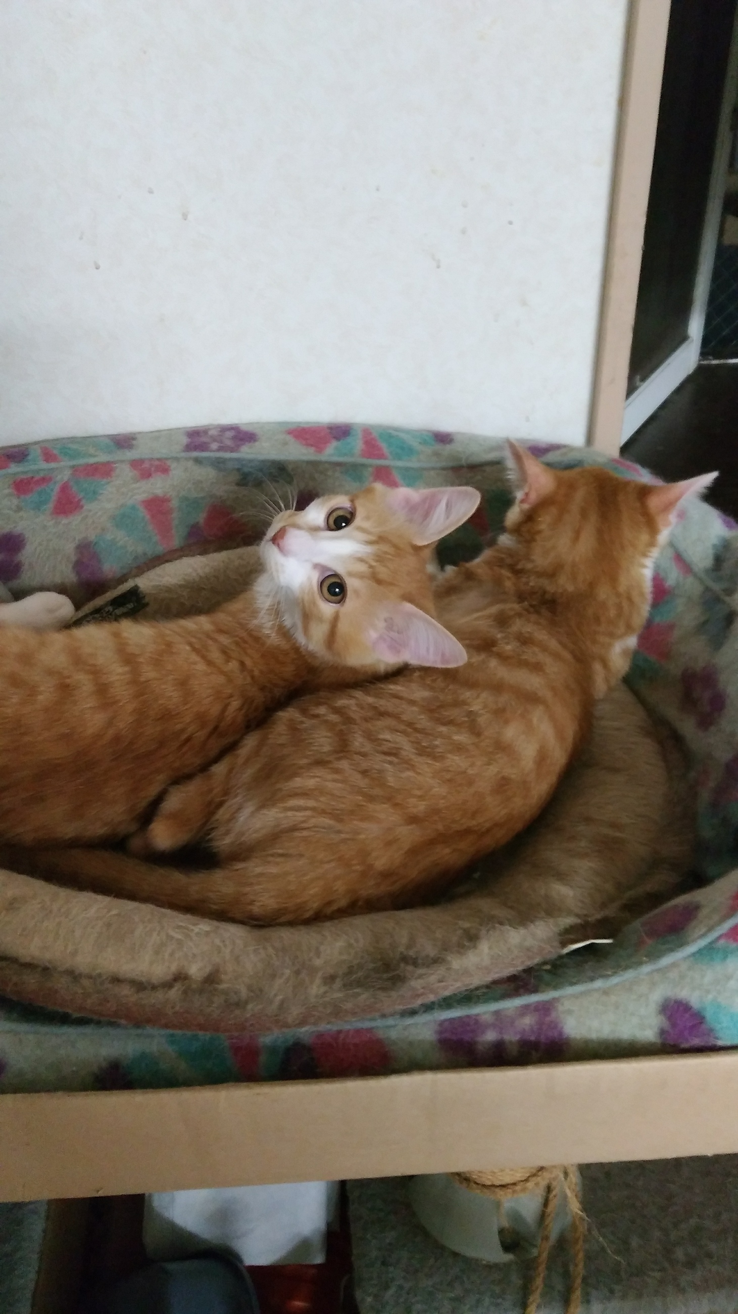 まめすけくんとチビこちゃん、おお!!寄り添ってお団子できますね!!