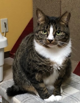 5年前に巣立ったトム君は下痢と嘔吐で受診したところ胃腸炎の疑いで投薬治療をしていましたが改善されず、食欲も落ちてきたためレントゲン検査をしたところ腸のあたりに何かあるということで造影剤で検査してやはり何か写るので手術したそうです。