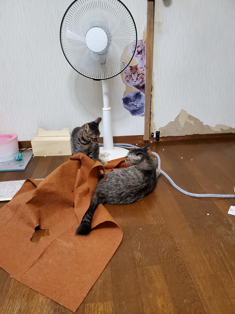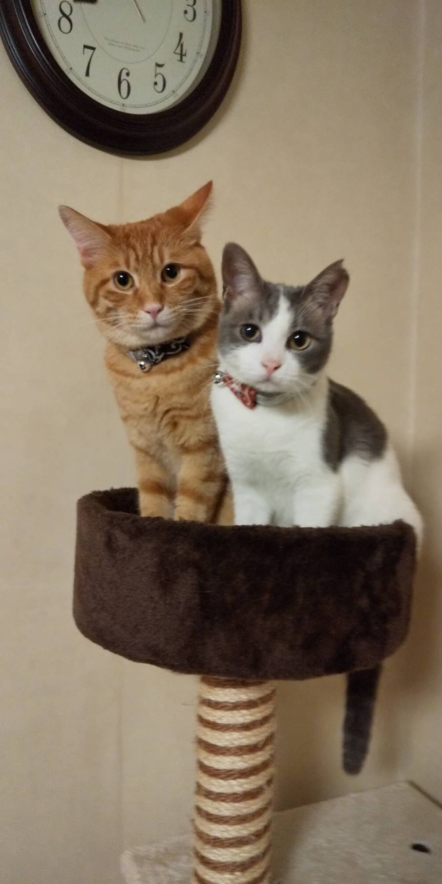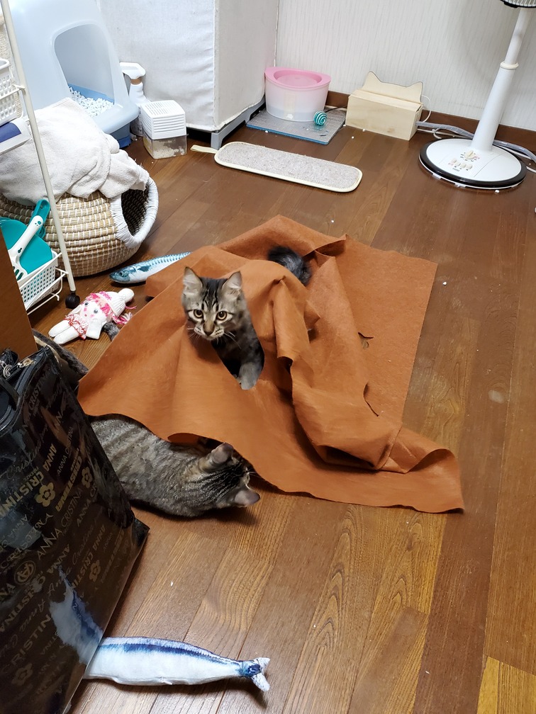 カイト君、ロミちゃん、サム君たち、おいかけっこでキャットタワーが壊れてしまったそうです!