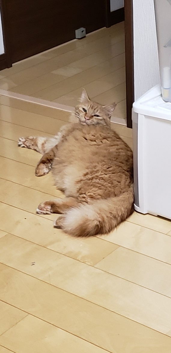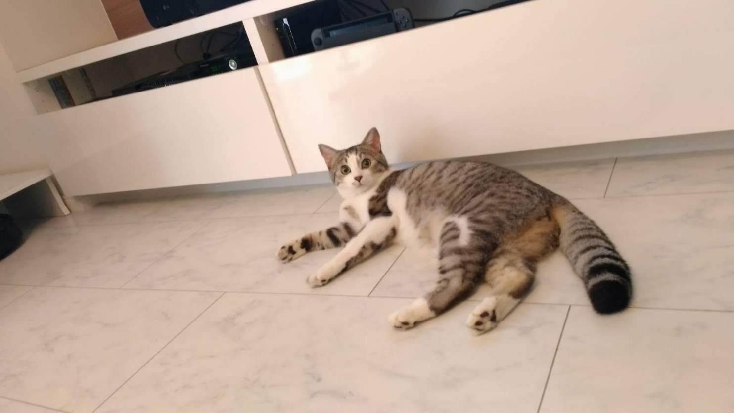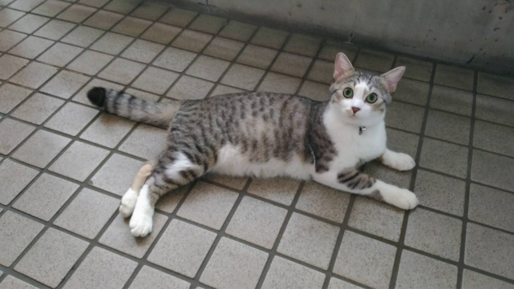 こたろうくん、白いフローリングと毛並みのキジ柄が映えて素敵ですね!