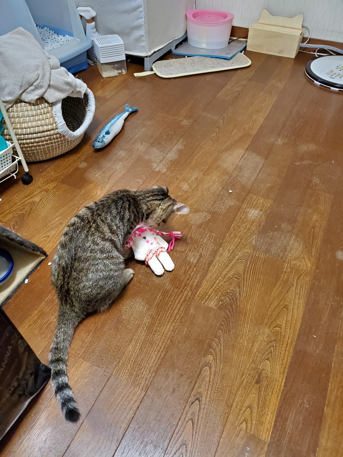 毎日お部屋の中で元気に遊んですごしているそうです。