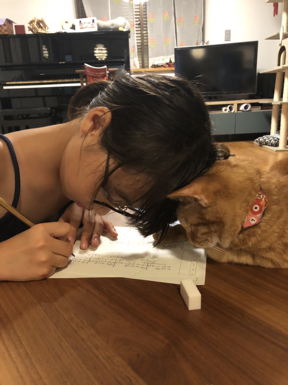 マーちゃん、ライくんはお兄ちゃんのお勉強のお手伝い?可愛いね!
