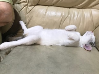 たっくさん遊んでへそ天寝! こんな時は天使に見えますね!