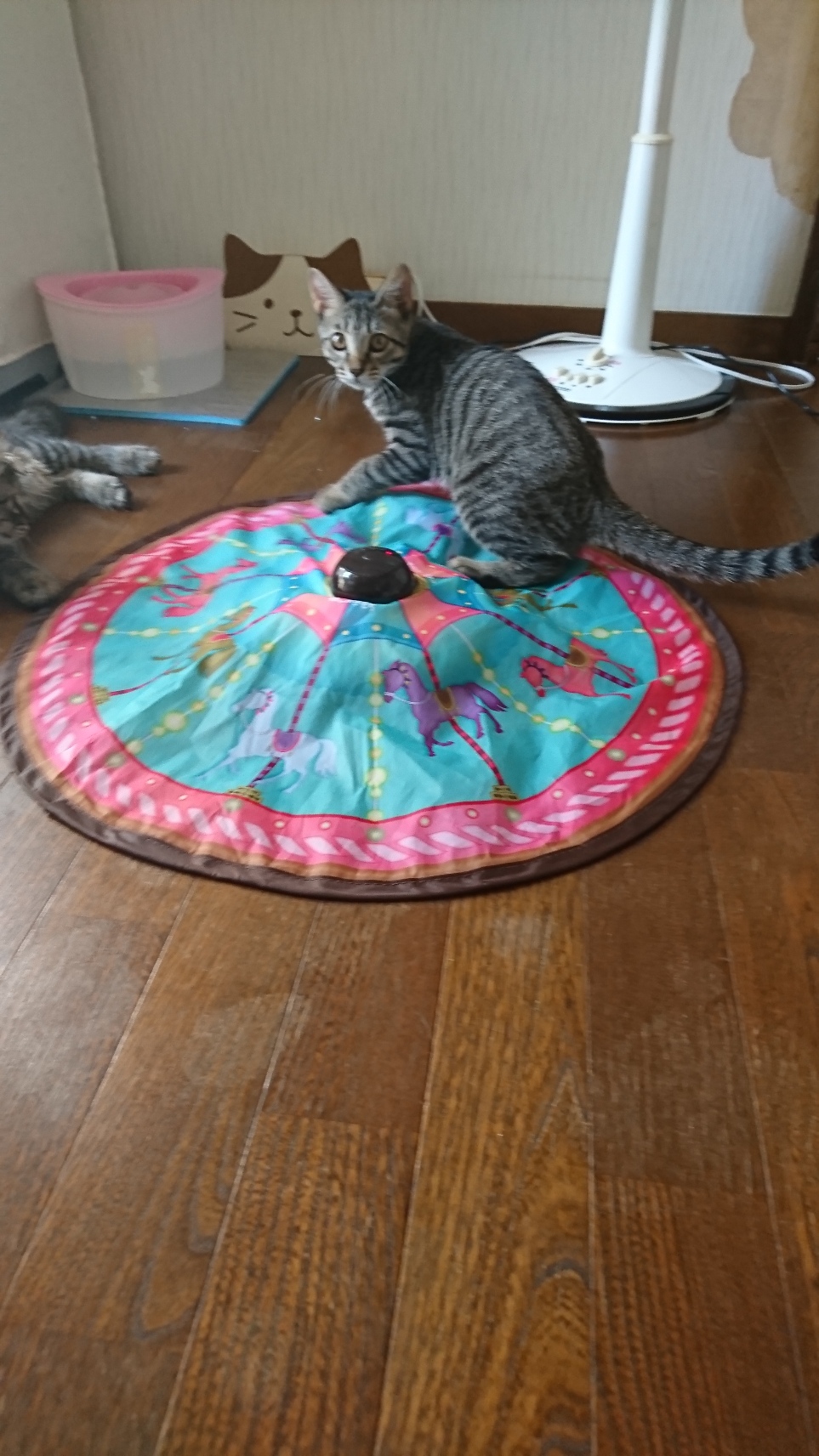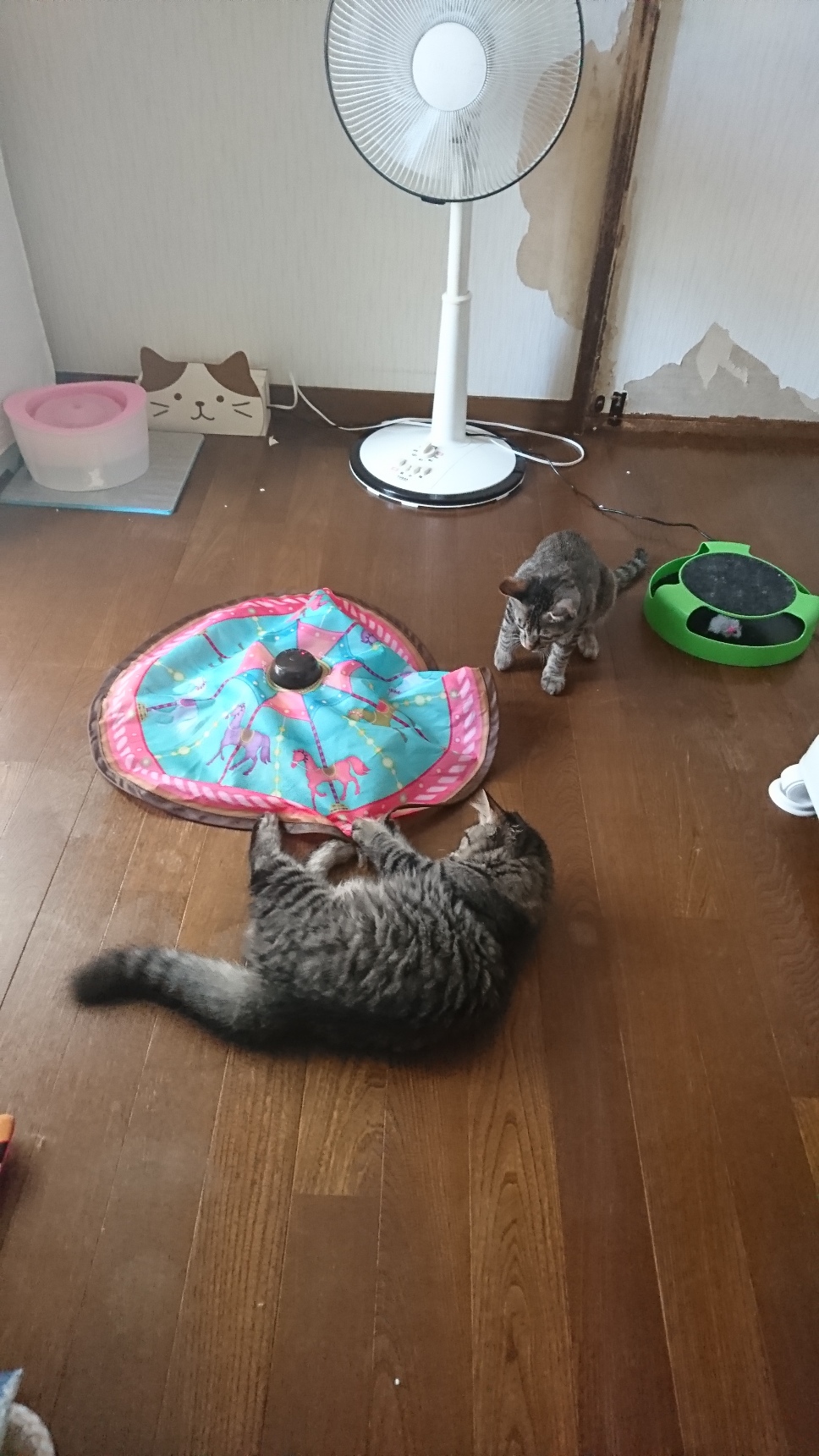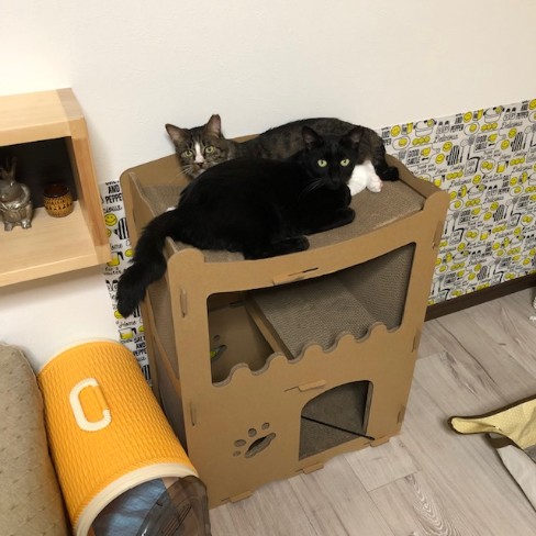 新しい基地を買ってもらってそれぞれが好きな場所で寛いでいますね。