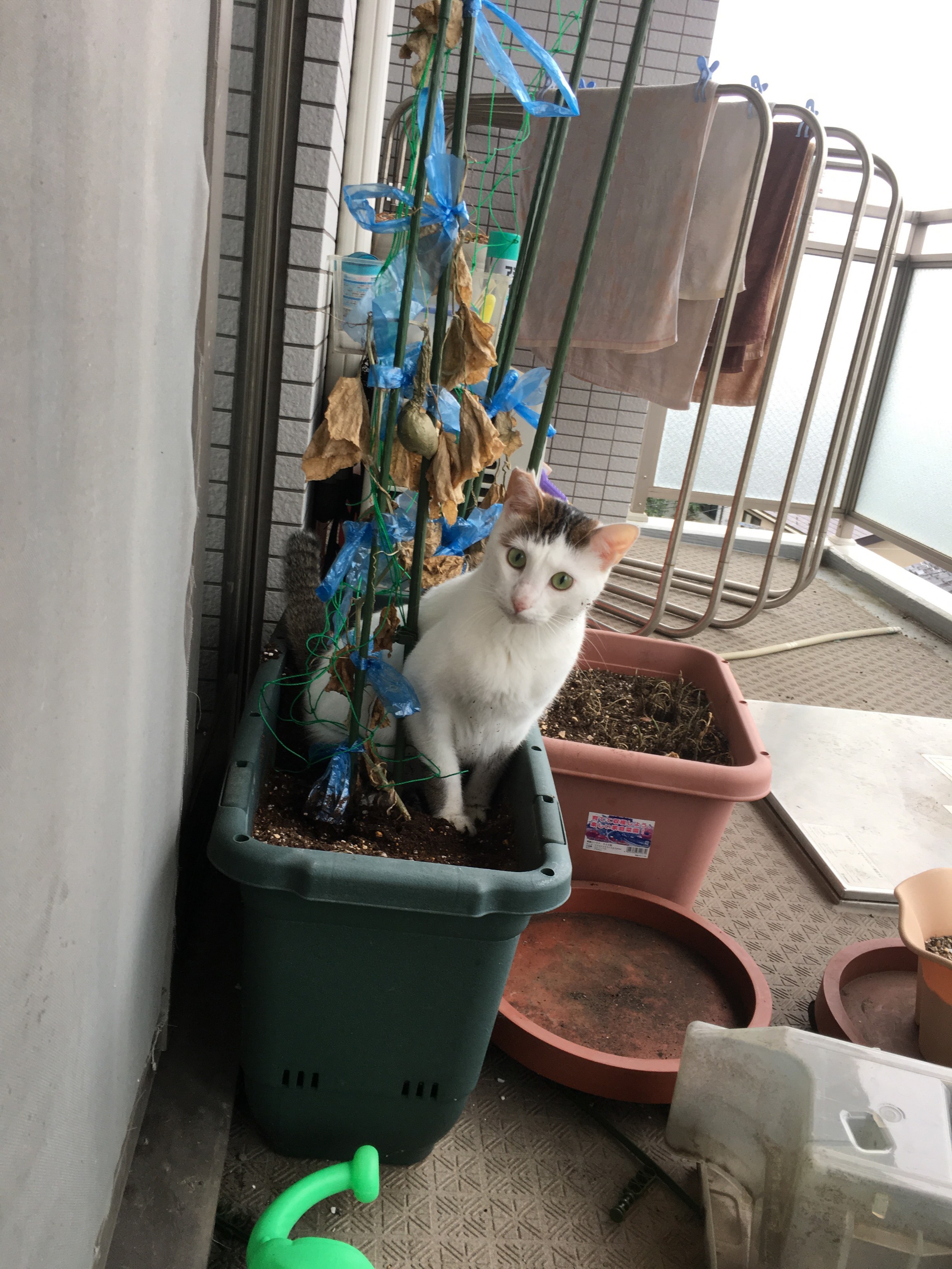 ベランダでここ掘れにゃんにゃん!