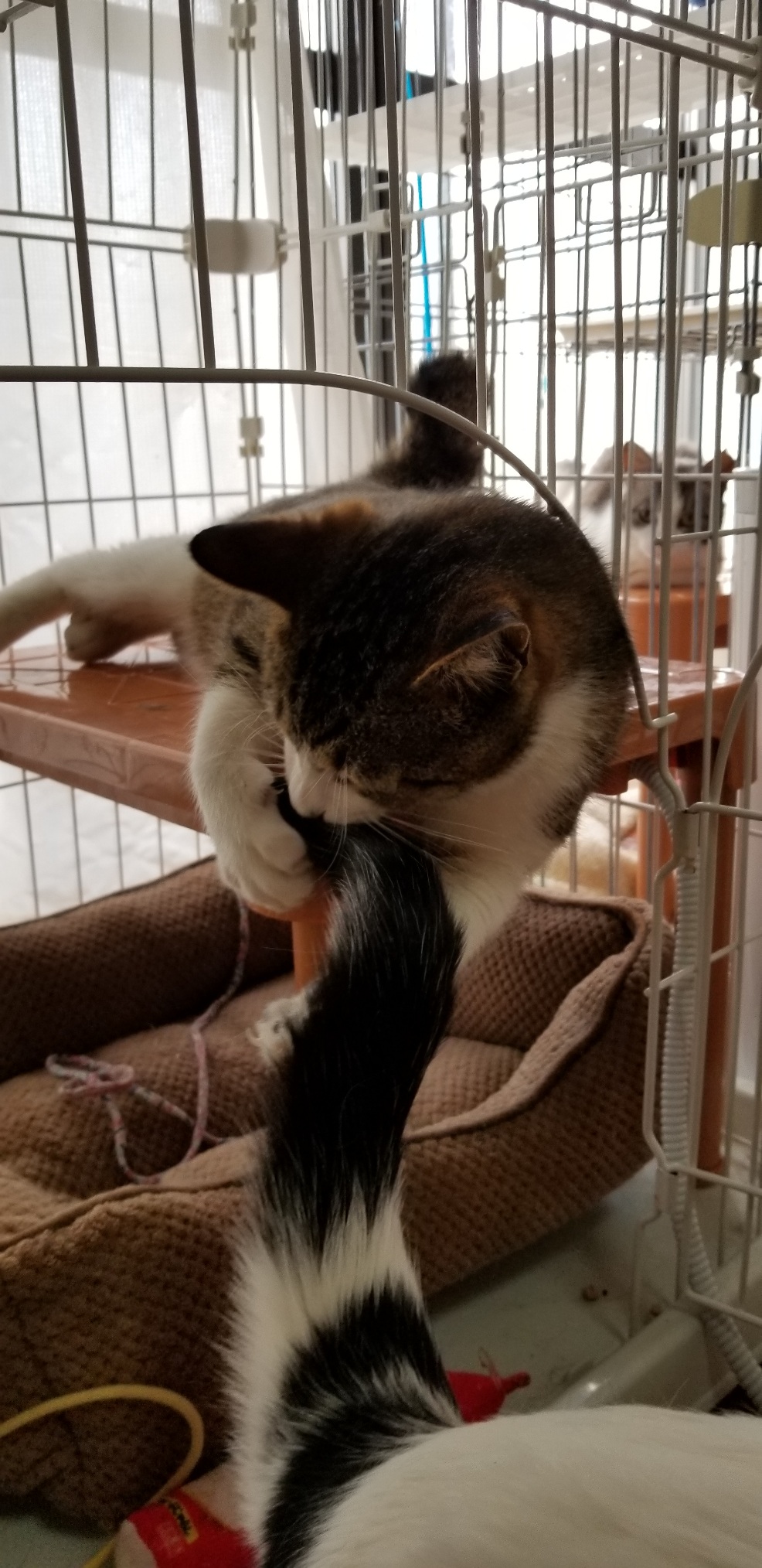 げんたの尻尾にじゃれ付き、結構激しかったのでちょっと中断しました。