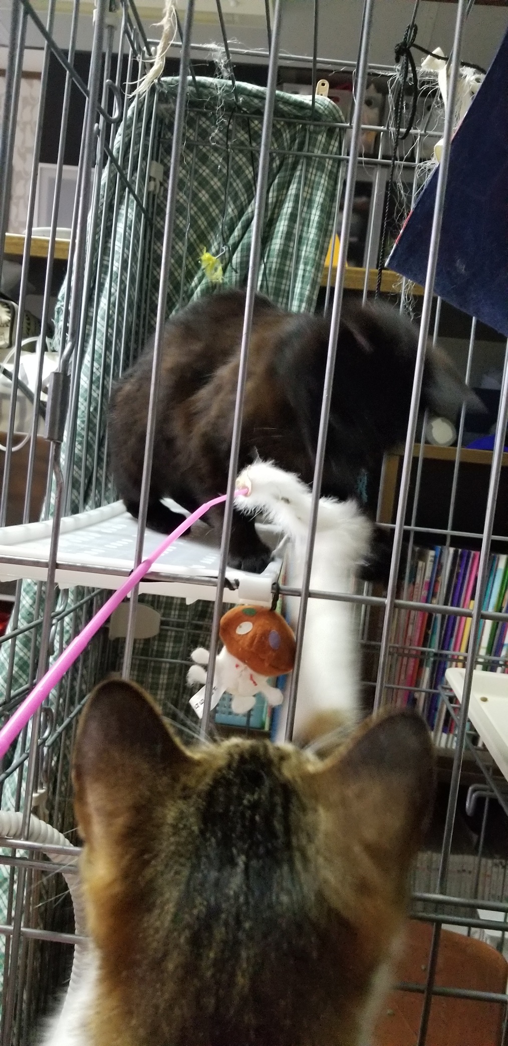 遊んであげているとまる君もいつの間にやら参加してじゃらしの奪い合い(笑)