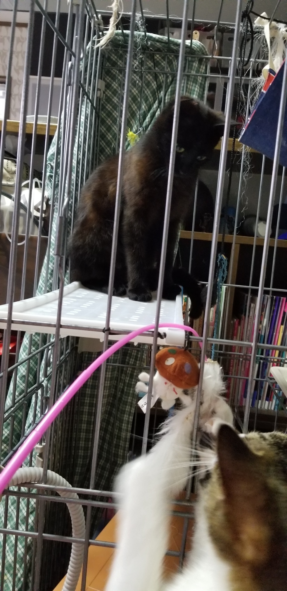女の子たち、ミーヤちゃんにレイナちゃんはシャーもでてまだまだ人馴れは難しいです。