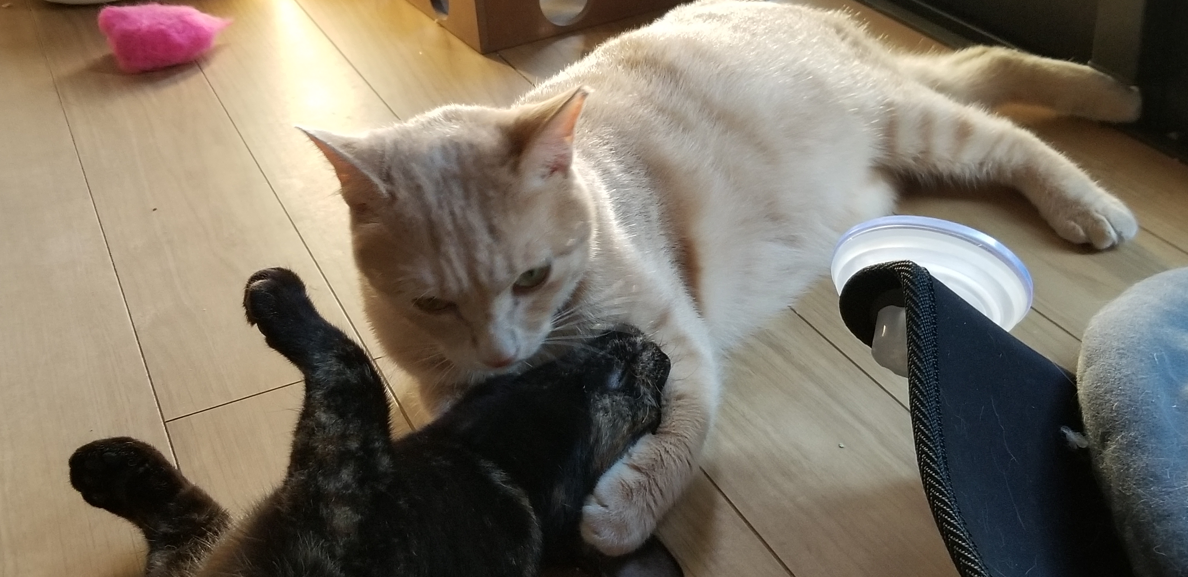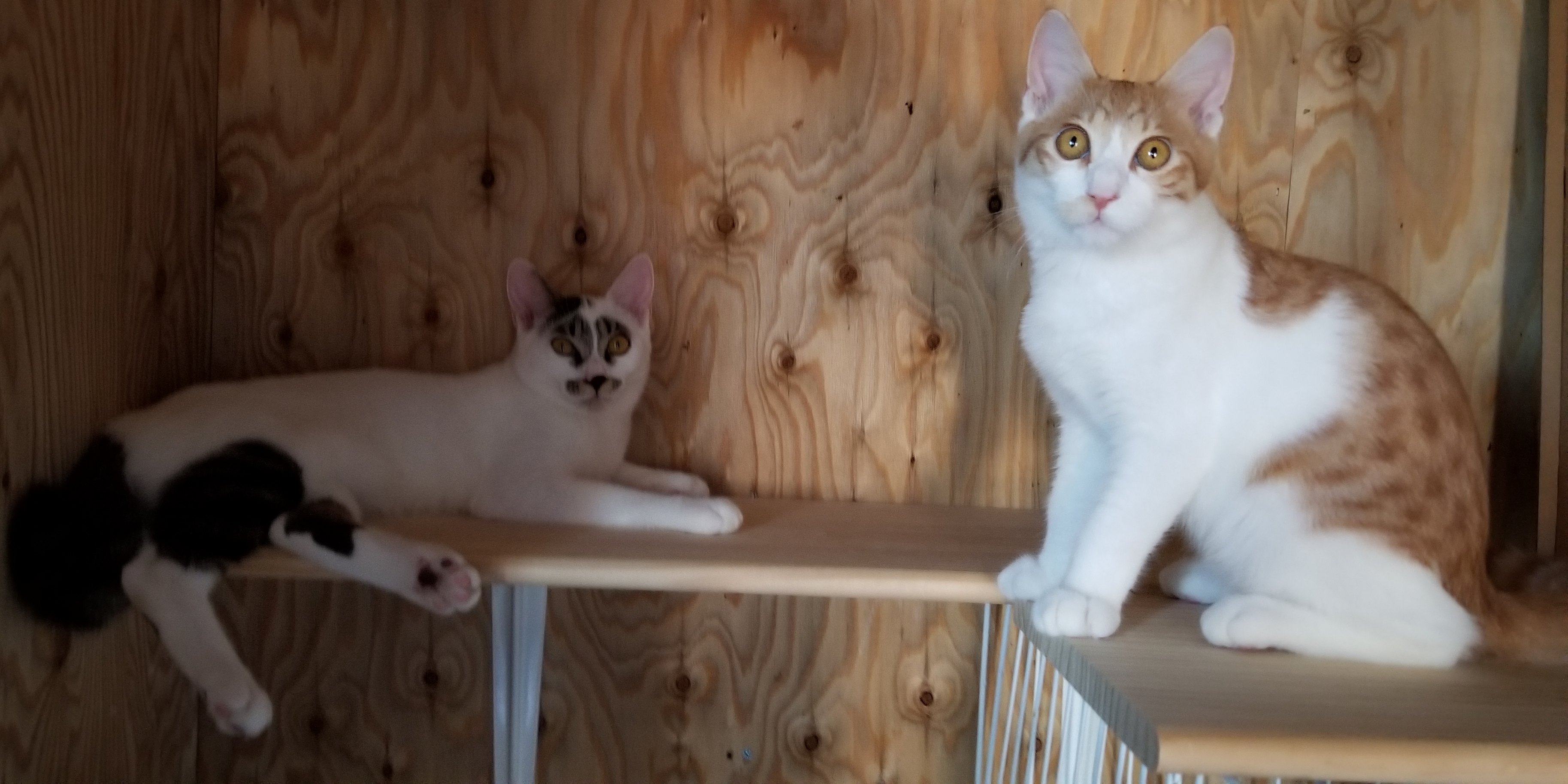 保護猫部屋ではドタバタ、にゃんにゃん楽しく過ごしています。