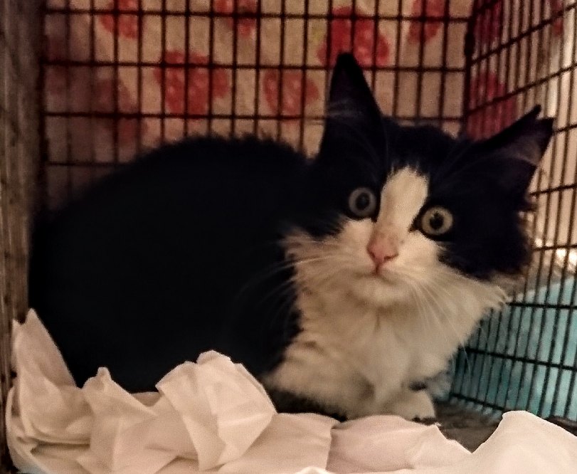 ボラTさんの保護された子です。長毛白黒の男の子、生後3か月くらい。
