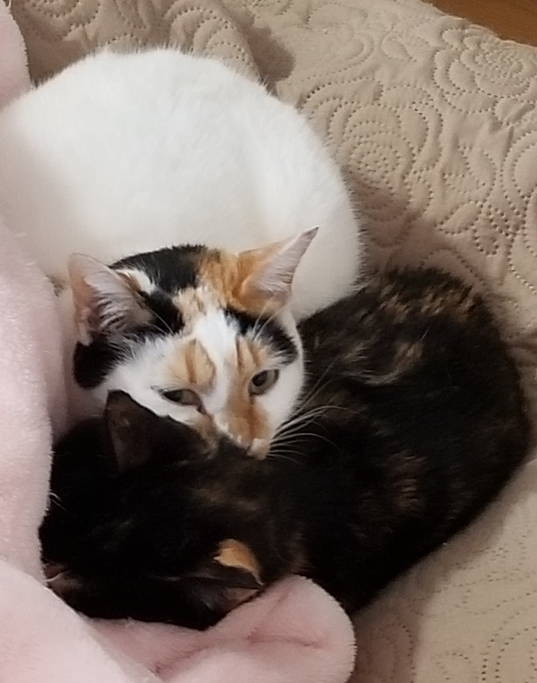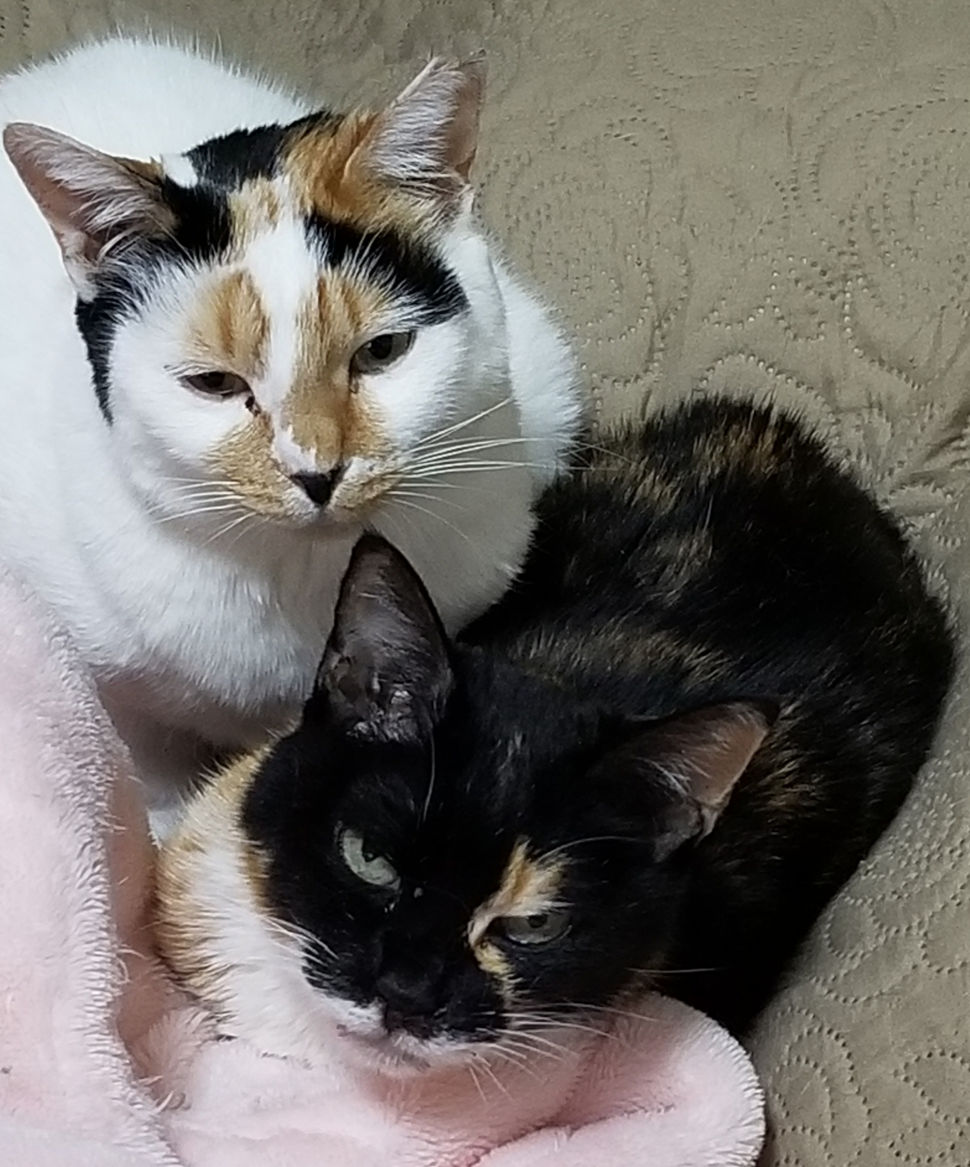 2匹とも保護猫部屋でフリーですが、距離を取っているようです。