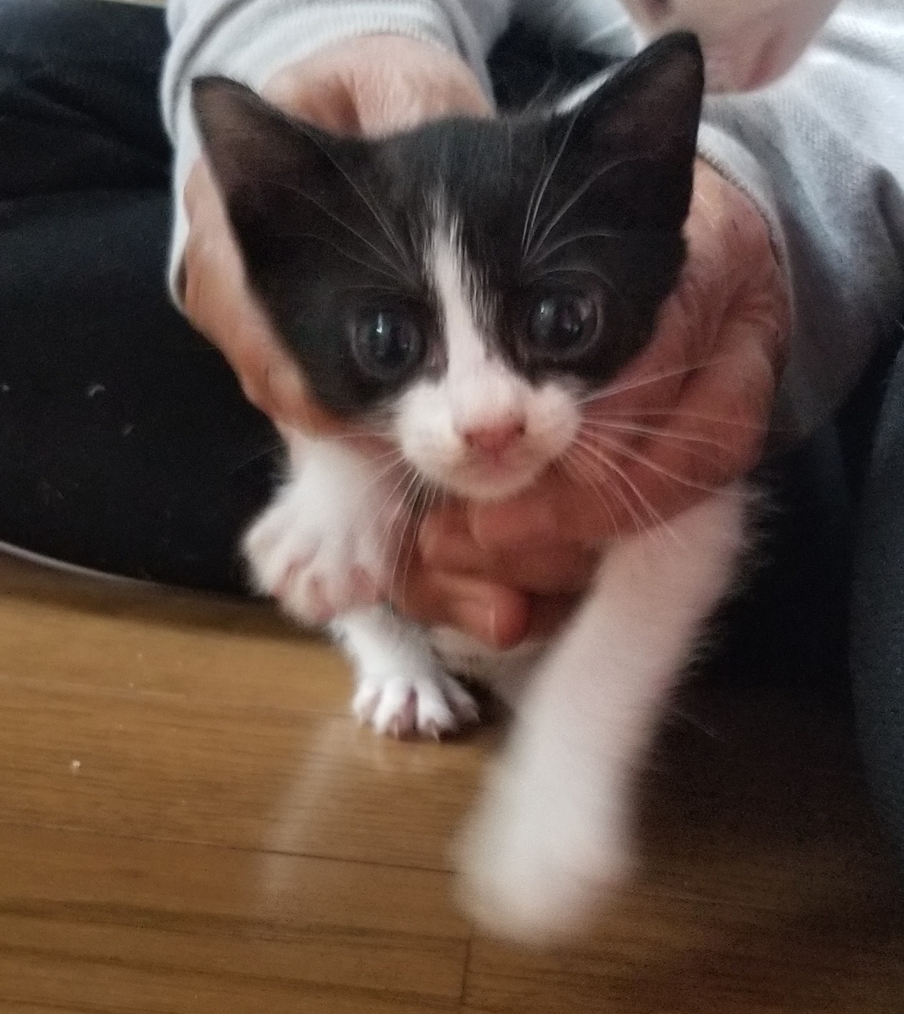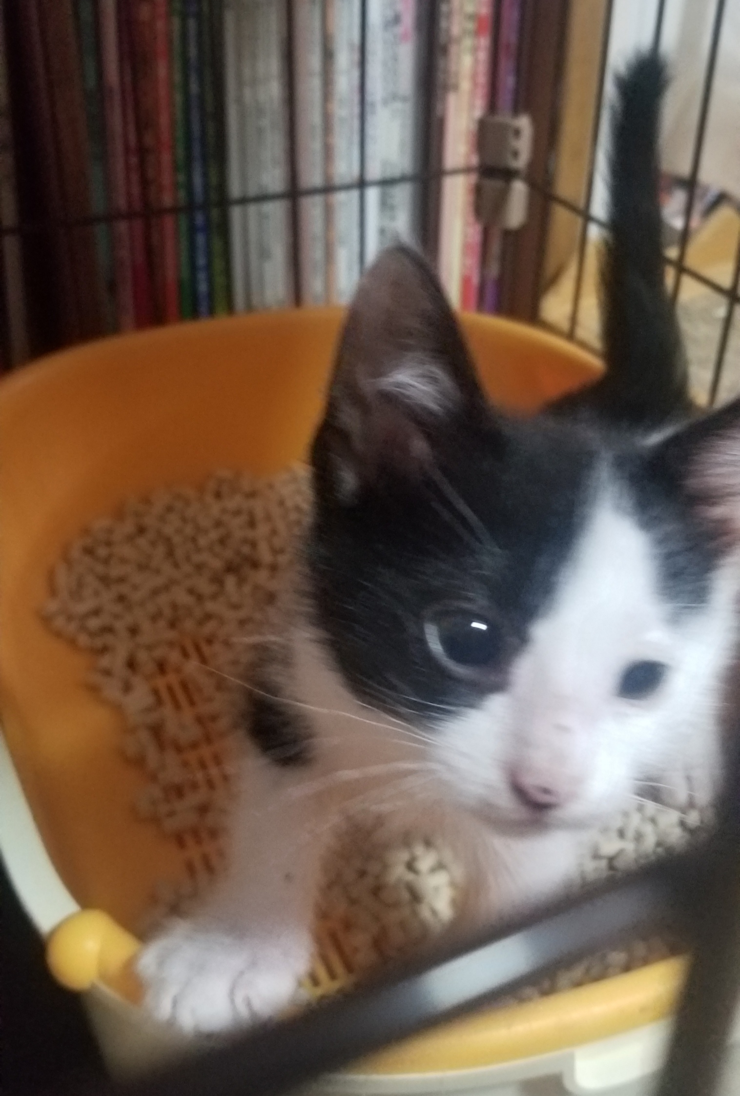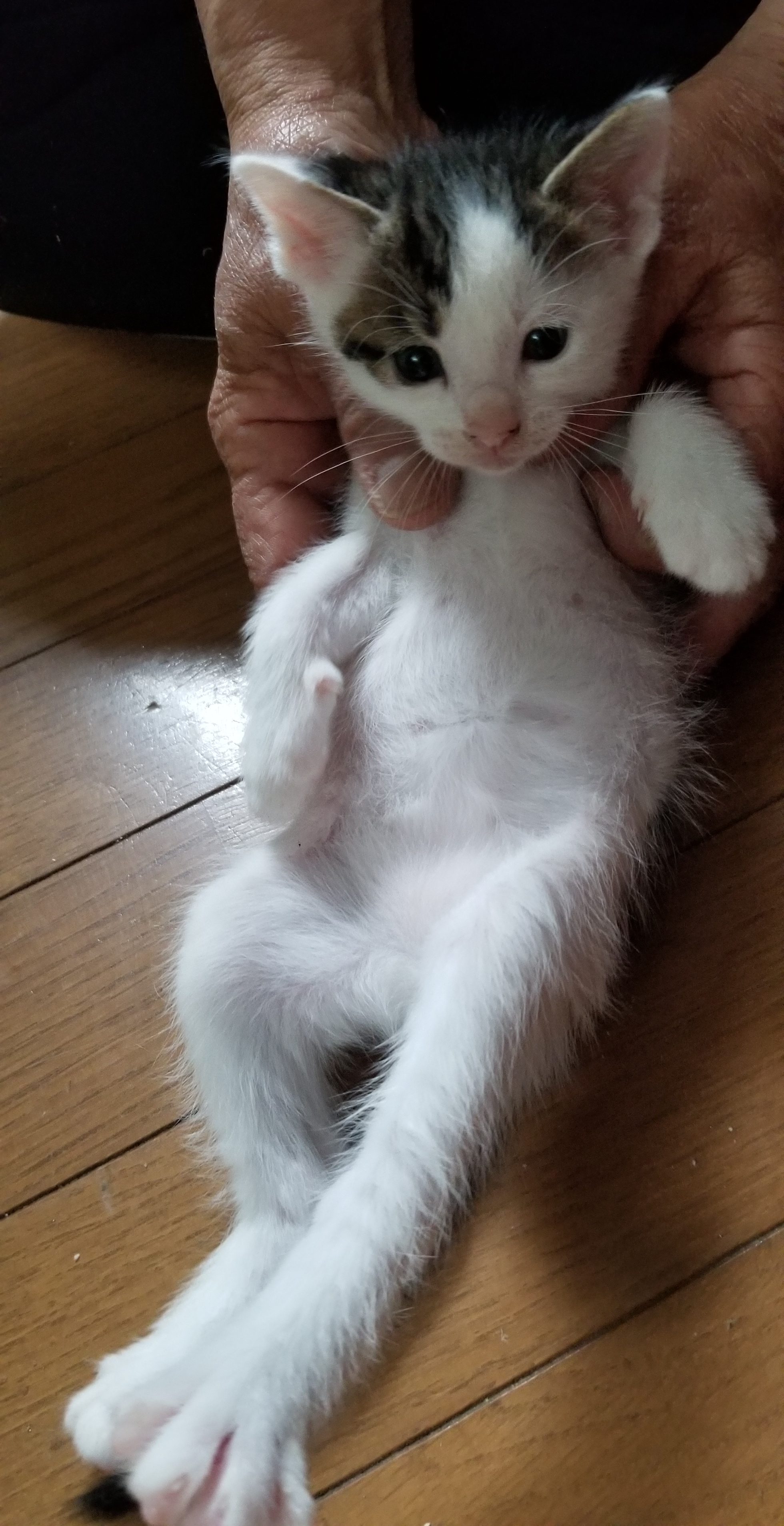 捨てられたようで人なれしていますがまだ環境にびっくりしている状況です。