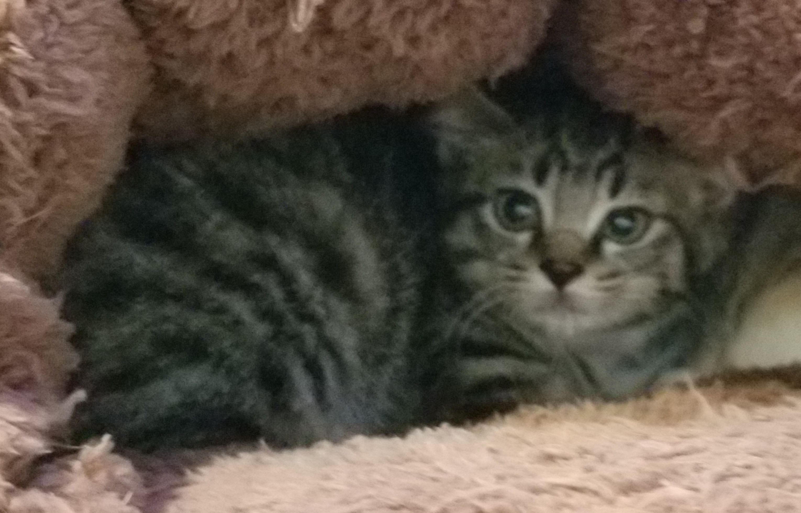 同じくキジトラ(少し薄め)の男の子、ちょっとビビりちゃんです。