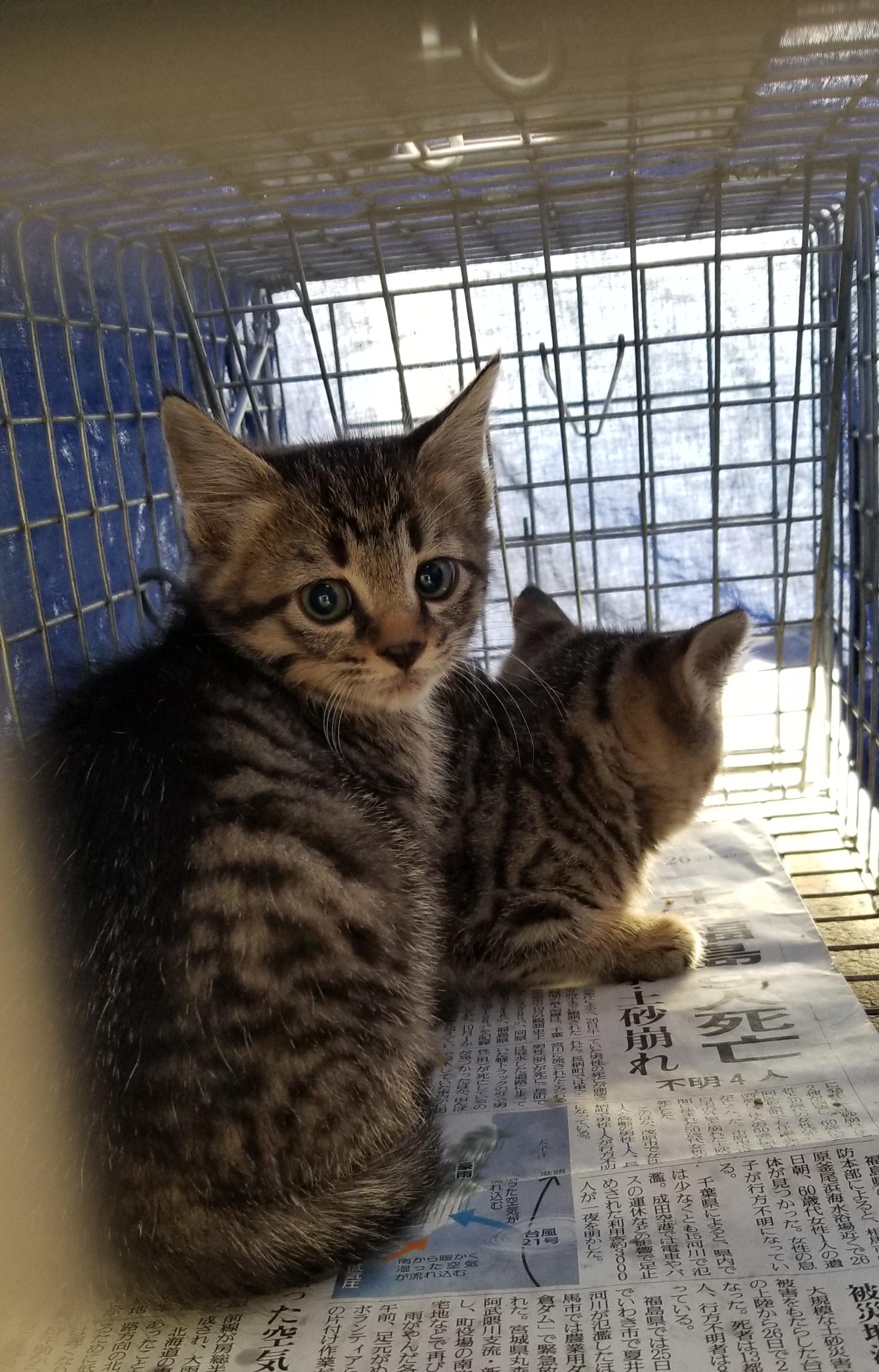 捕獲器3台、保護した子猫用のゲージを持っていきました。