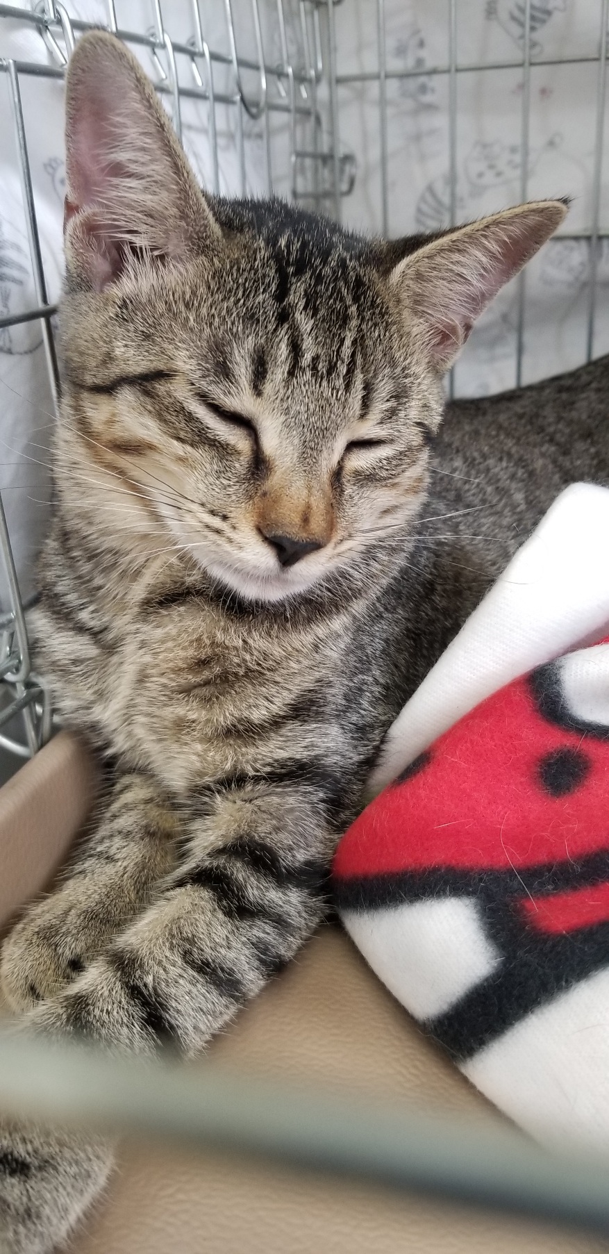 拓也君は、譲渡会場でもこんな格好で寝てしまう心臓の持ち主です!