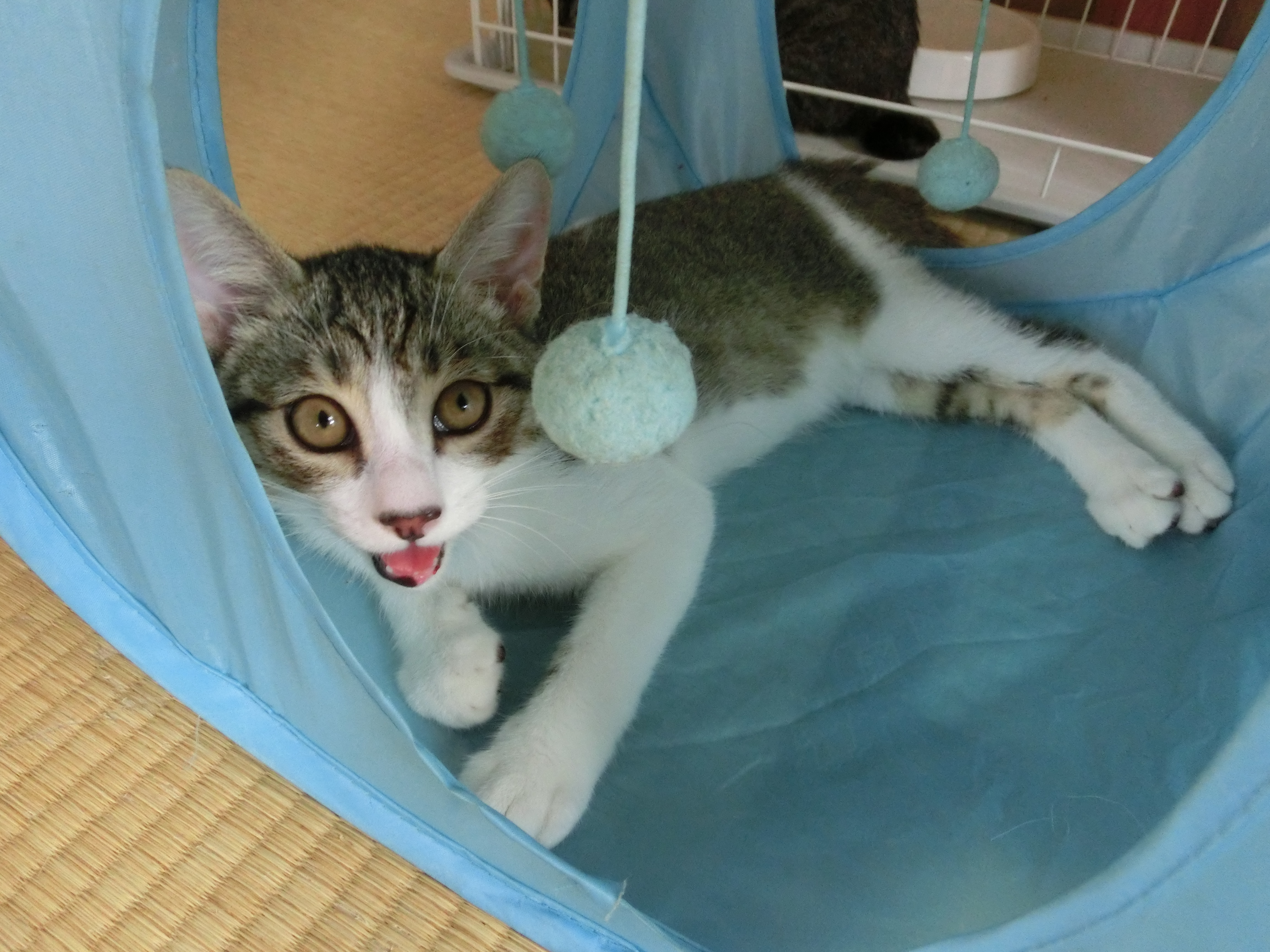 譲渡会場では毛布かぶってしまいますが、ホームグラウンドでは活発な子たちです。