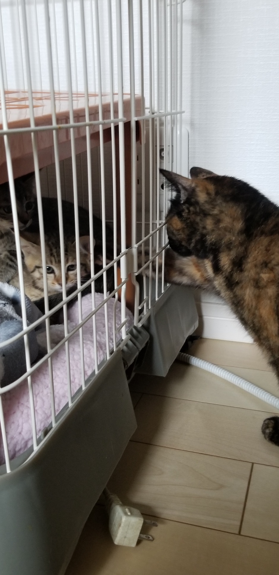 3匹の女の子(1匹は飼い猫)で2匹が出産。