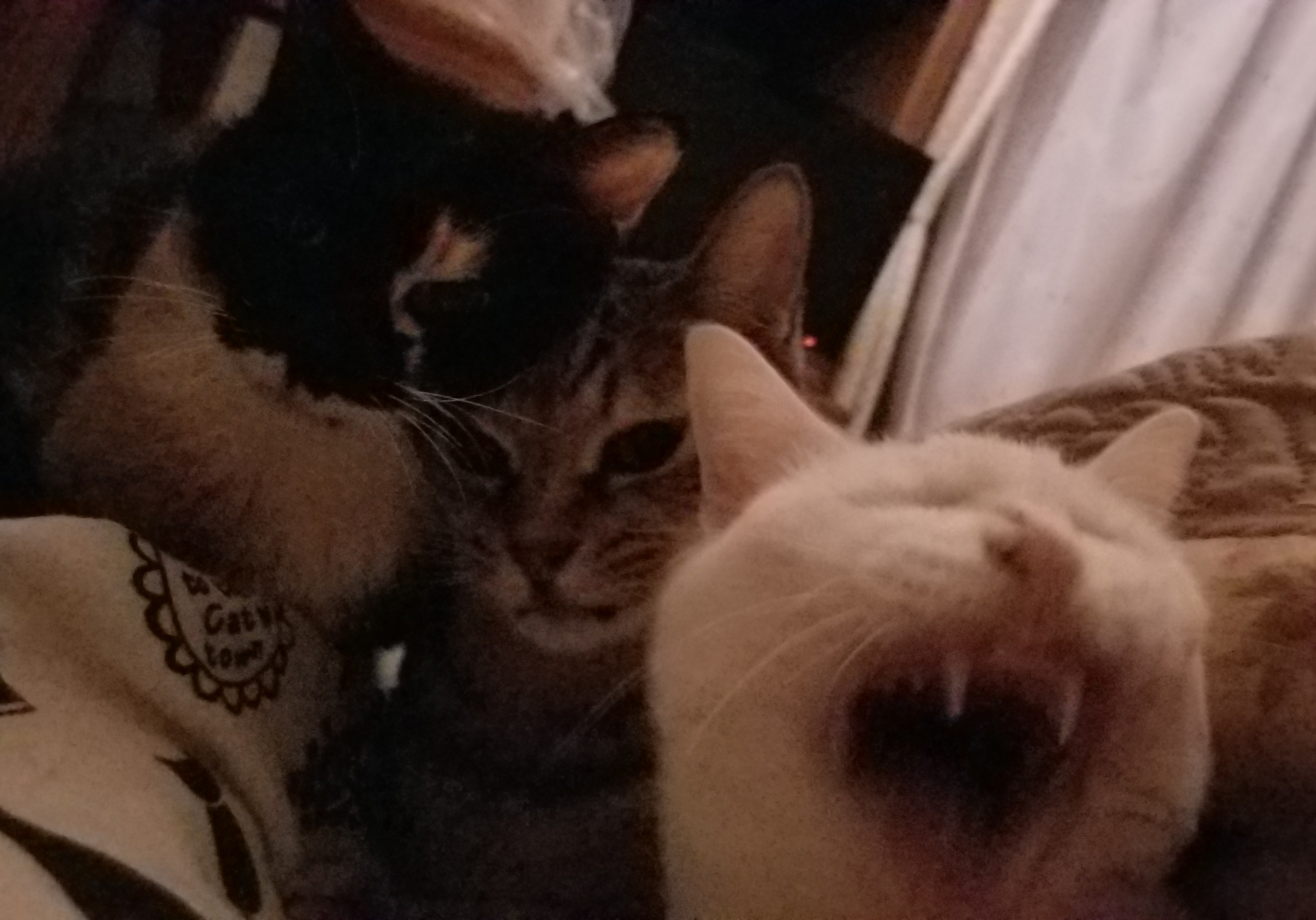 人間とこんなに間近で接したこともなかったでしょうし、室内の猫たちがわらわらたくさんいて