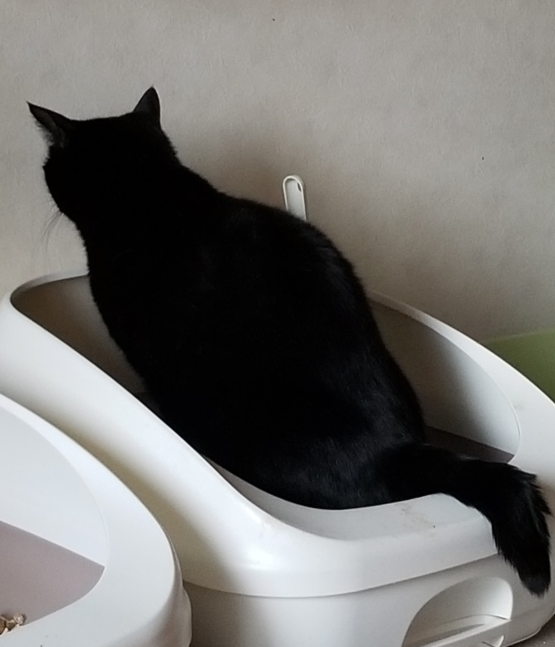 先週の木曜日夜に通院して検尿してストラバイトやシュウ酸の石が出たクロちゃん。