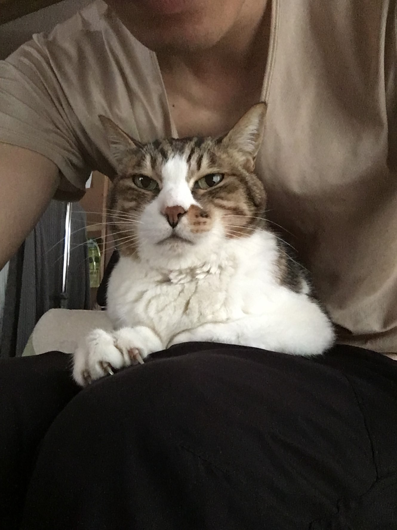 譲ることも多く、仕方なく膝でなく肩にのっていたそうです。