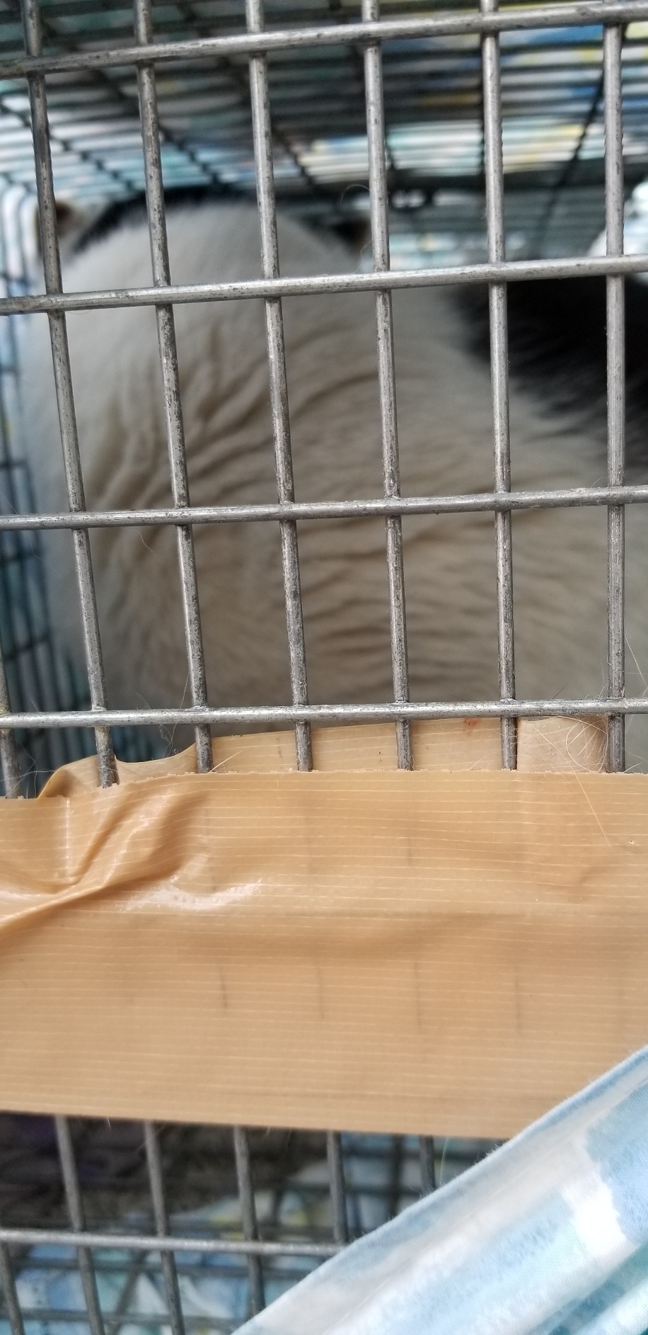 お膝に抱っこして爪切りをしてからゲージに移動しました。