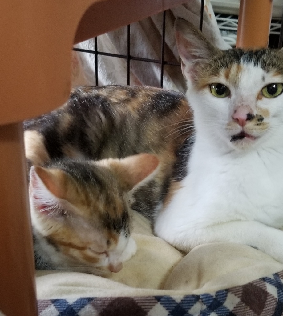 こちらの三毛2匹を預かっていただいて人馴れ修行中です。