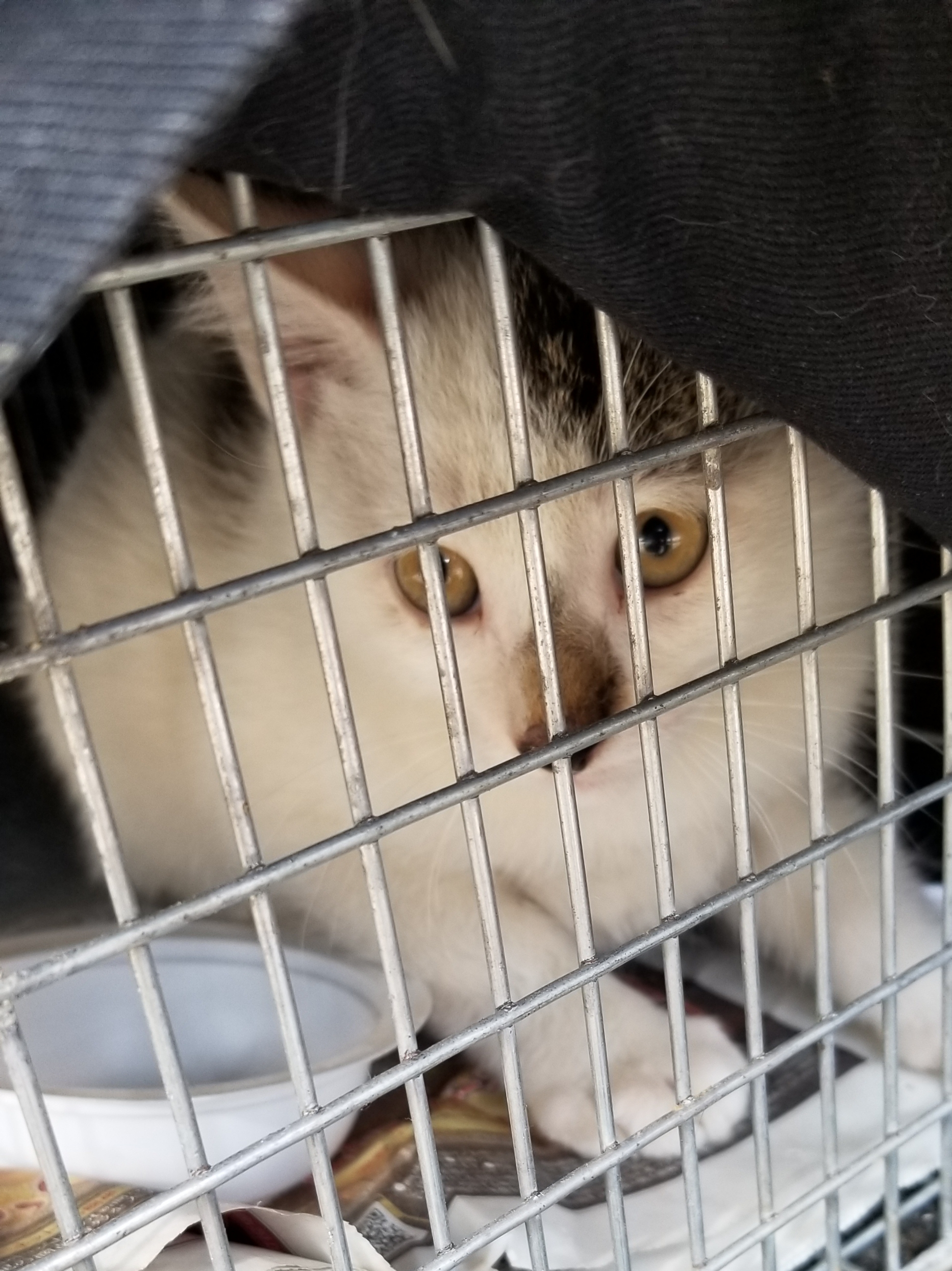 去年生まれた初産の三毛ちゃん。リリースできない、こんなんじゃ。