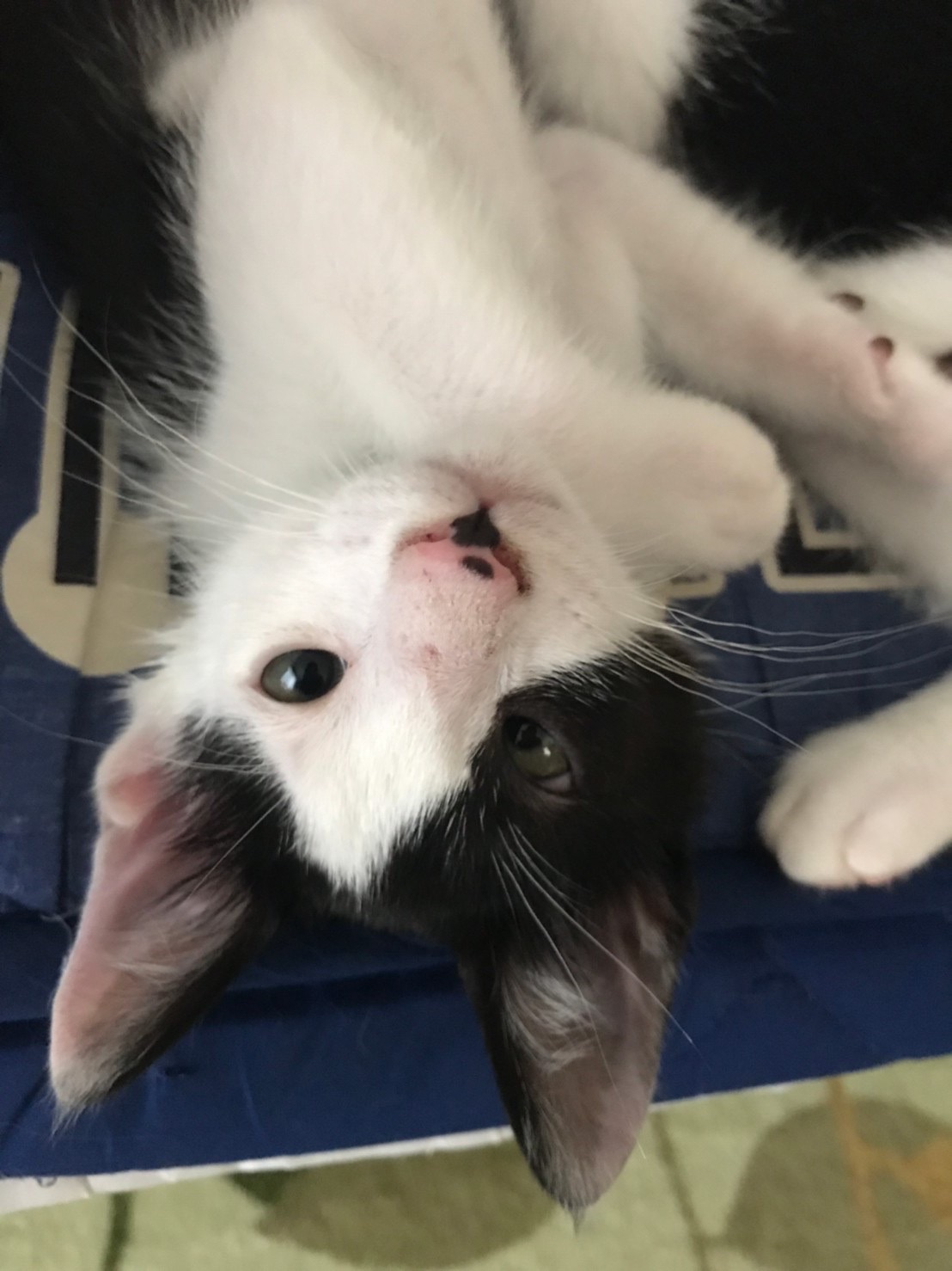母猫に嫌われて兄妹からも疎まれていたそうでちょっとひねてしまいました。