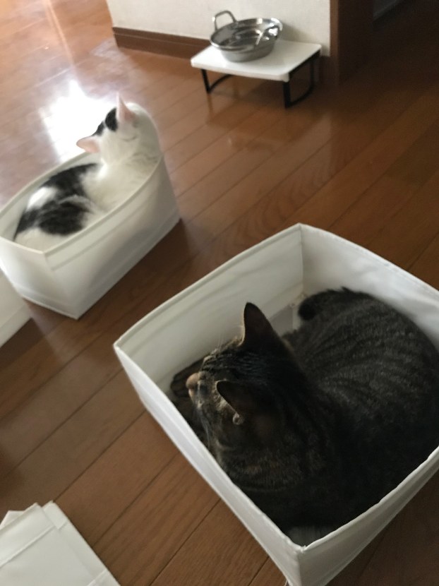 そらくんにりくくん、箱好きなのはどこの子も同じかな?