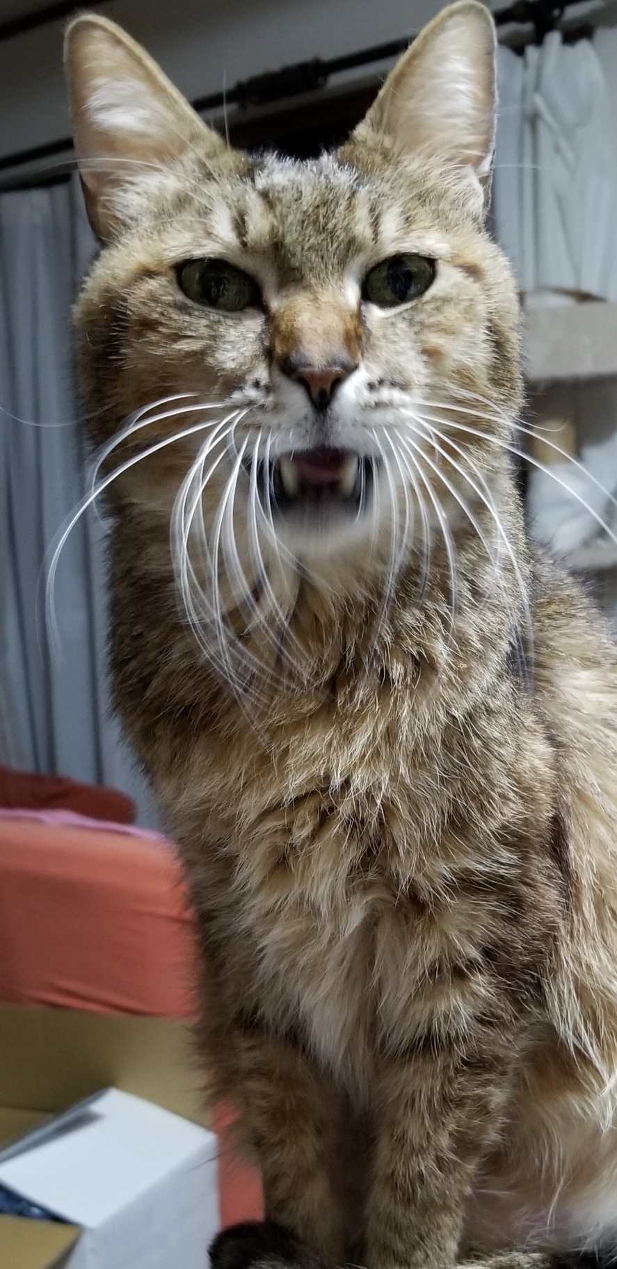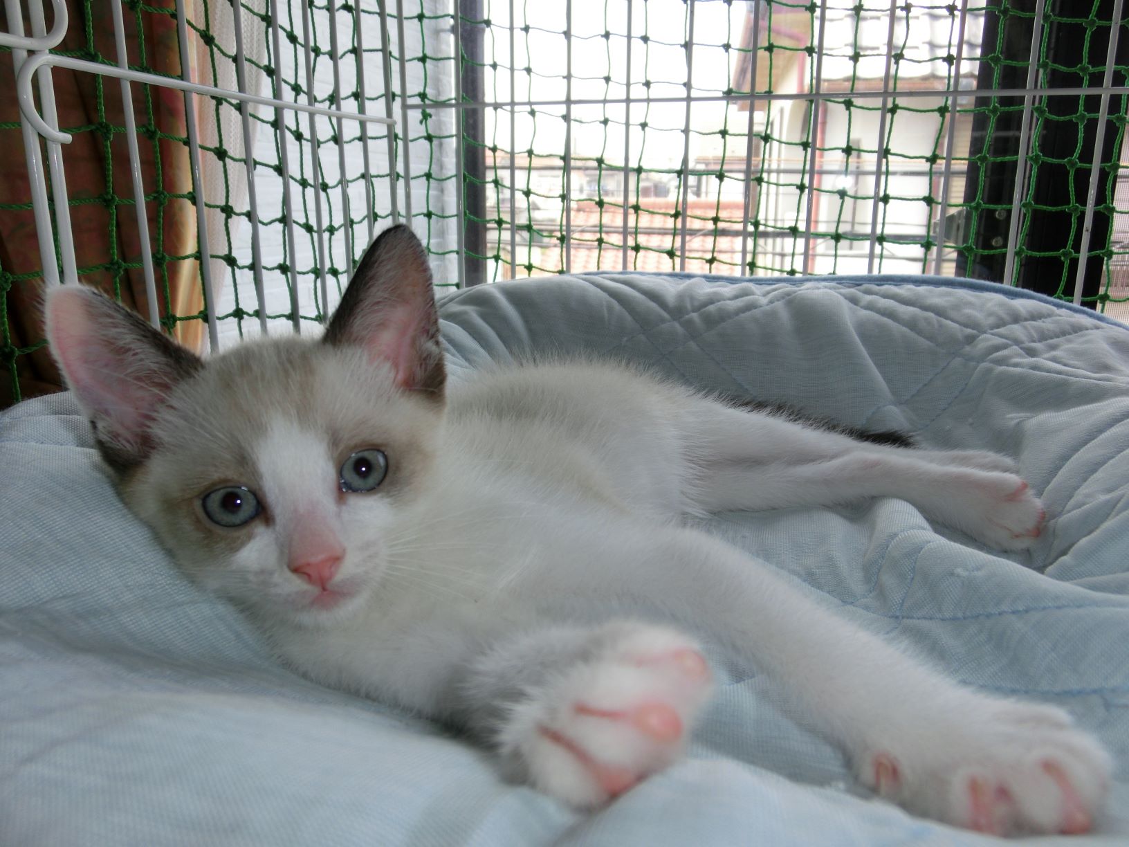 2階の寝室に暮らすなぎさは去年の6月にエサやりさんの玄関前に行き倒れていました。